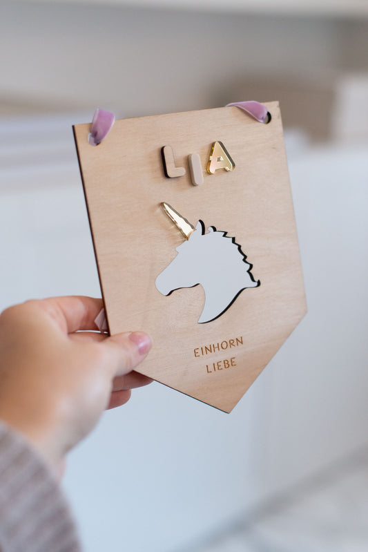 Wimpel Kinderzimmer Einhorn – EINHORN LIEBE – Wanddeko Einhörner