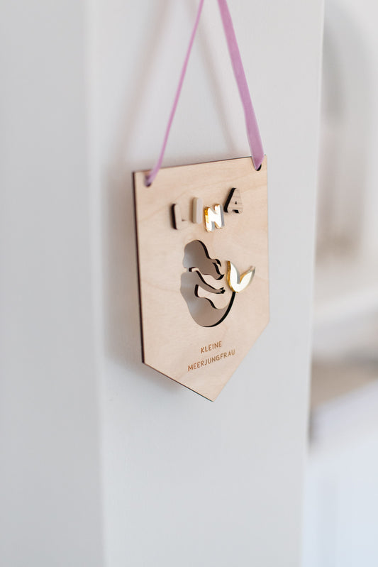 Wimpel Kinderzimmer Meerjungfrau – KLEINE MEERJUNGFRAU – Wanddeko Meerjungfrau