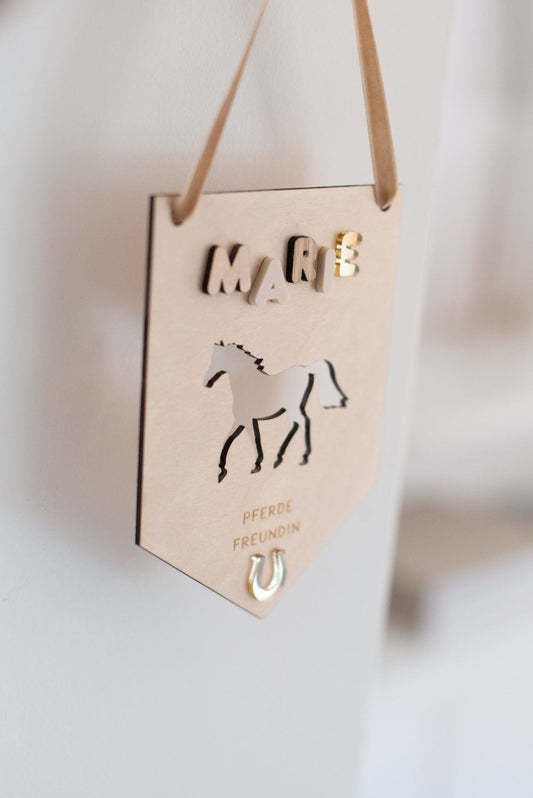 Wimpel Kinderzimmer Pferde – PFERDE FREUNDIN – Wanddeko Pferde