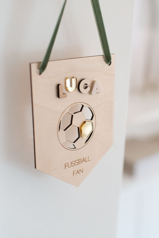 Türschild fürs Kinderzimmer mit 3D-Namen - Namensschild Baby - FUSSBALL