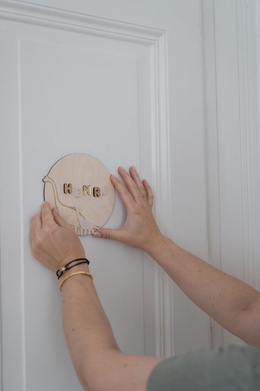 Türschild fürs Kinderzimmer mit 3D-Namen - Namensschild Baby - DINO