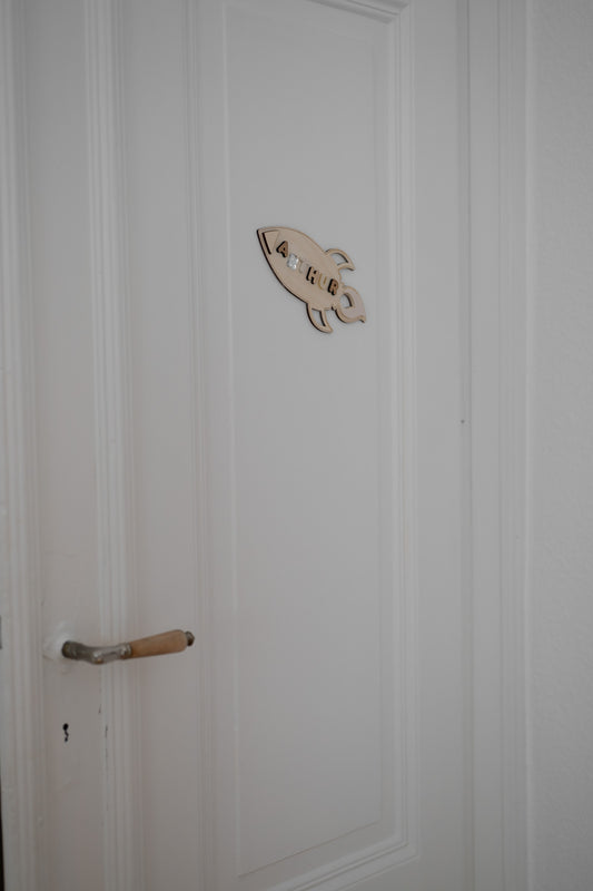 Türschild fürs Kinderzimmer mit 3D-Namen - Namensschild Baby - RAKETE