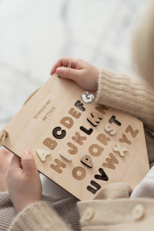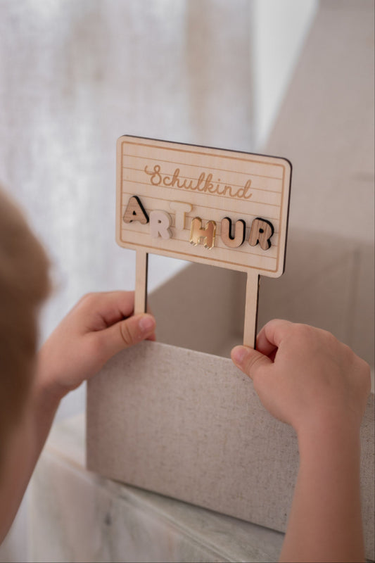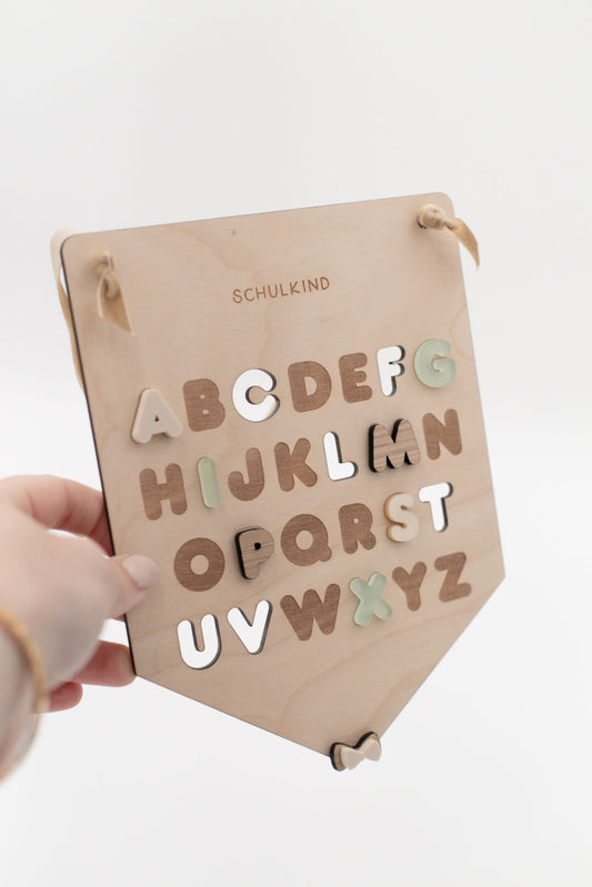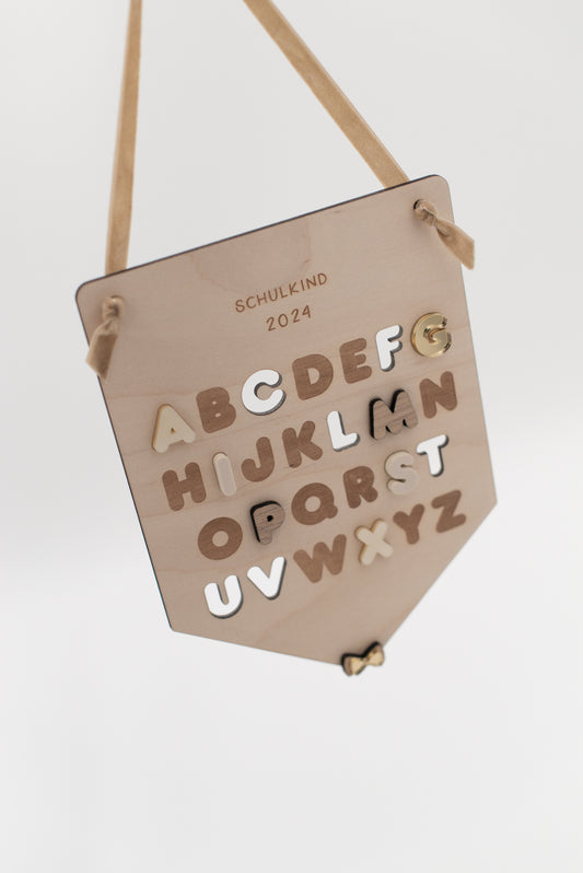 ABC Wimpel - Geschenk Schulkind - Geschenkidee zur Einschulung (GOLD)