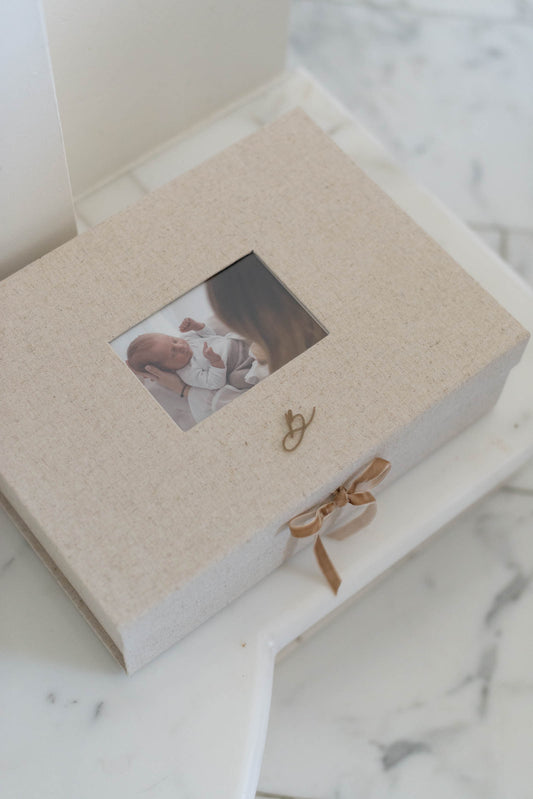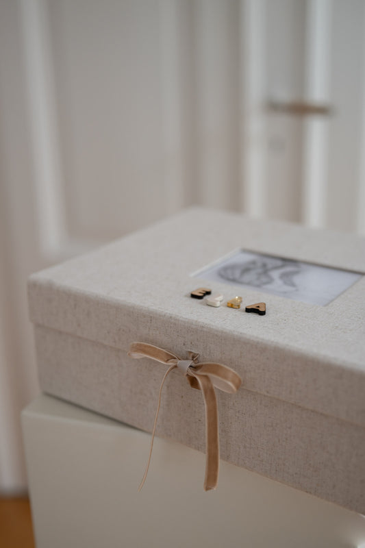 Hochwertige große Erinnerungsbox - Leinen - Baby Erinnerungsbox