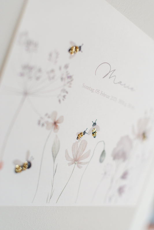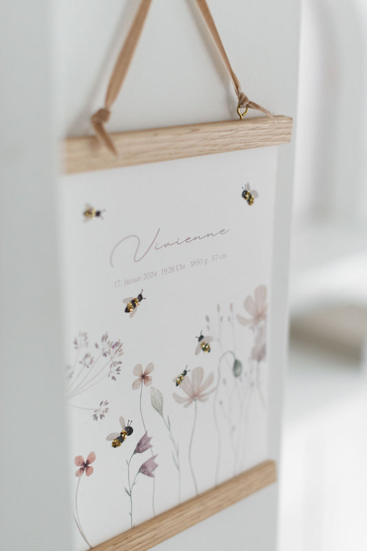 Geburtsposter BIENCHEN - Bienen auf Blumenwiese - Das perfekte Geschenk zur Geburt