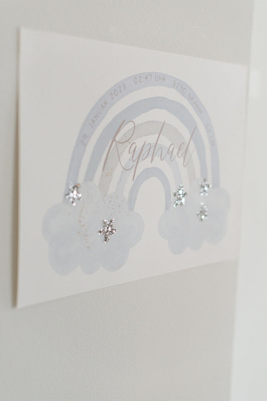 Geburtsposter Regenbogen Blau - Das perfekte Geschenk zur Geburt