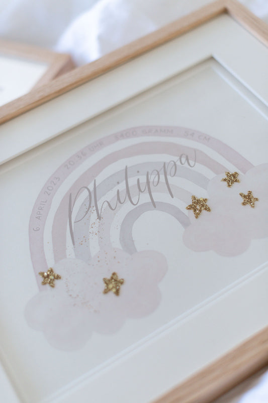 Geburtsposter Regenbogen Rosa - Das perfekte Geschenk zur Geburt