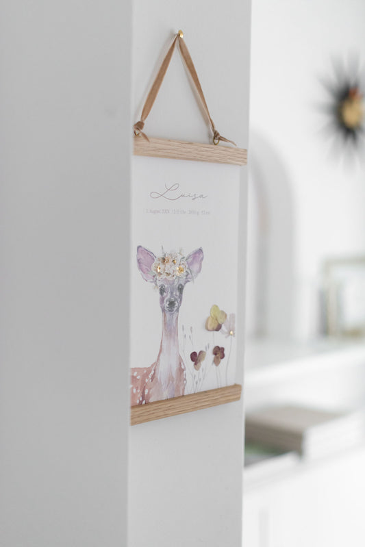 Geburtsposter Waldtiere - Reh in Blumenwiese - Das perfekte Geschenk zur Geburt