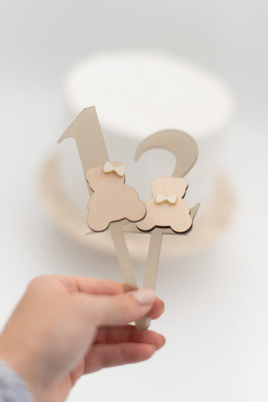 Caketopper Zahlen Bärchen Holz - Teddy Deko Erster Geburtstag - Kuchendeko Teddybär