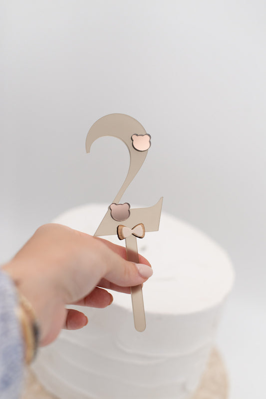 Caketopper Zahlen Bärchen Spiegel - Teddy Deko Erster Geburtstag - Kuchendeko Teddybär