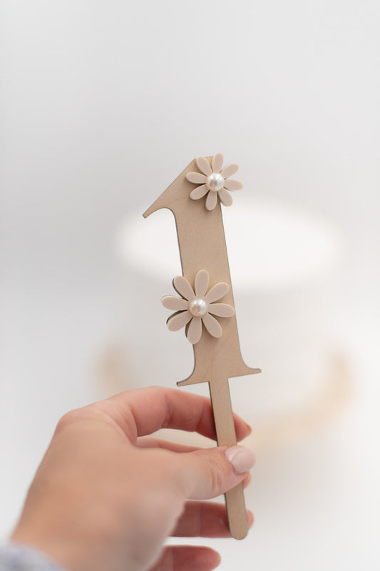 Caketopper Zahlen Gänseblümchen PEARLS - Zahlen Daisy Deko Erster Geburtstag - Kuchendeko Gänseblümchen