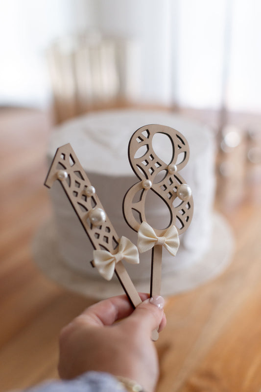 Caketopper Zahlen Bows & Pearls - Kuchendeko Zahlen elegant - Geburtstag Teenie Mädchen & Erwachsene